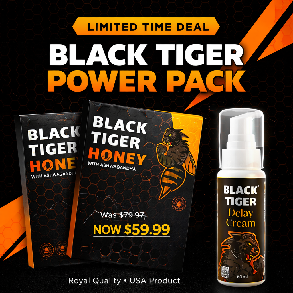 The Black Tiger Performance Pack combines two popular Black Tiger products into one convenient bundle. This package includes two packs of Black Tiger Honey along with one Black Tiger Delay Cream, offering a practical option for customers who prefer a combined purchase rather than ordering items separately.